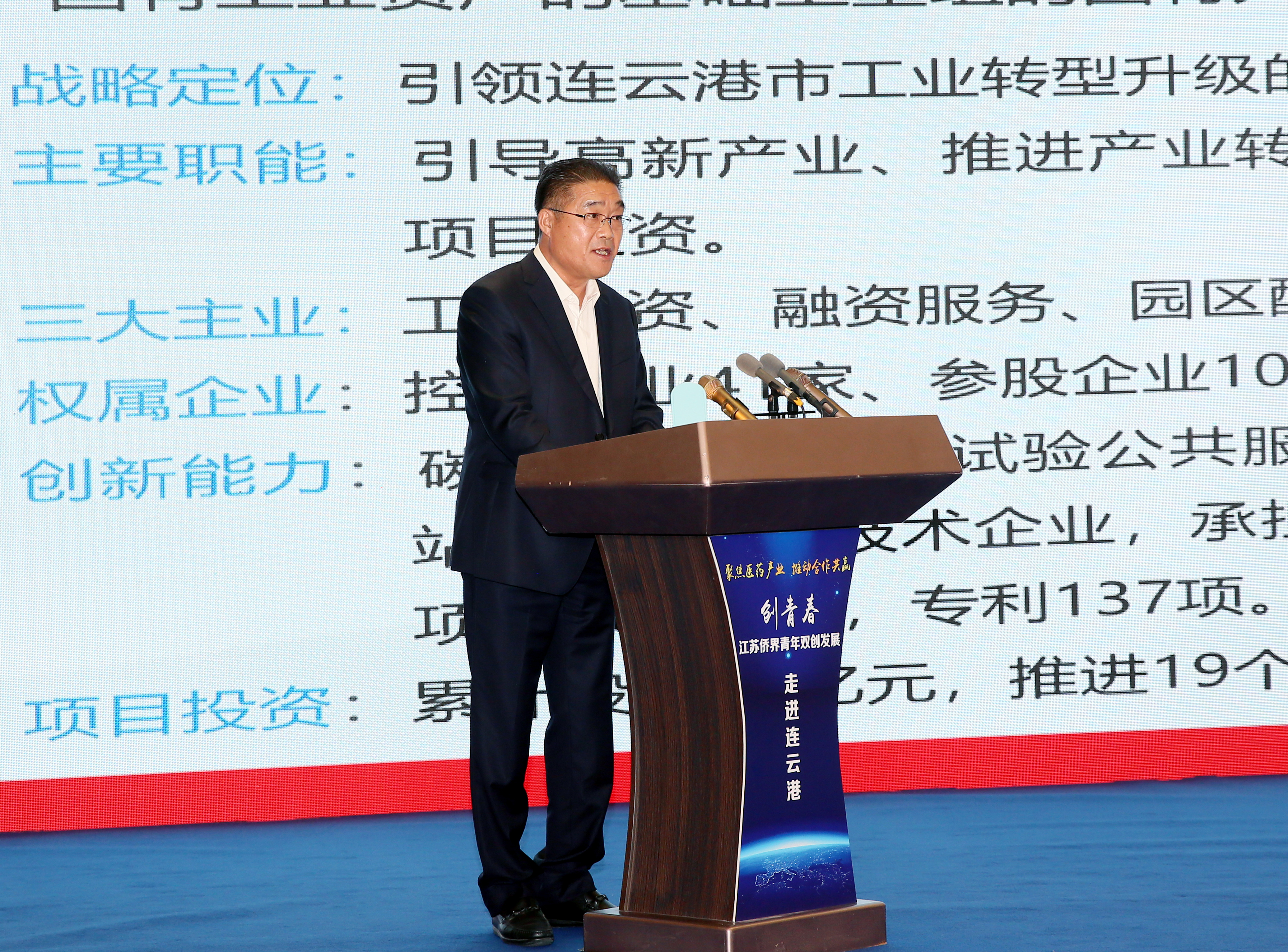 為深化醫(yī)藥技術(shù)交流合作,推動(dòng)海內(nèi)外僑界資源與集團(tuán)國(guó)際醫(yī)藥創(chuàng)新產(chǎn)業(yè)園需求有效對(duì)接,112日至3日,由江蘇省僑聯(lián)指導(dǎo),省僑青會(huì)、市僑聯(lián)、市工業(yè)投資集團(tuán)聯(lián)合主辦的“創(chuàng)青春——江蘇僑界青年雙創(chuàng)發(fā)展·走進(jìn)連云港”交流實(shí)踐活動(dòng)成功舉行。連云港市委副書記、統(tǒng)戰(zhàn)部部長(zhǎng)、市政協(xié)黨組副書記胡建軍,省僑聯(lián)二級(jí)巡視員李發(fā)勇出席活動(dòng),并分別致辭。集團(tuán)公司黨委書記、董事長(zhǎng)丁銳,副總經(jīng)理劉承志,總經(jīng)濟(jì)師陳如軍和來(lái)自全省的近50名僑青和僑商代表參加活動(dòng)。