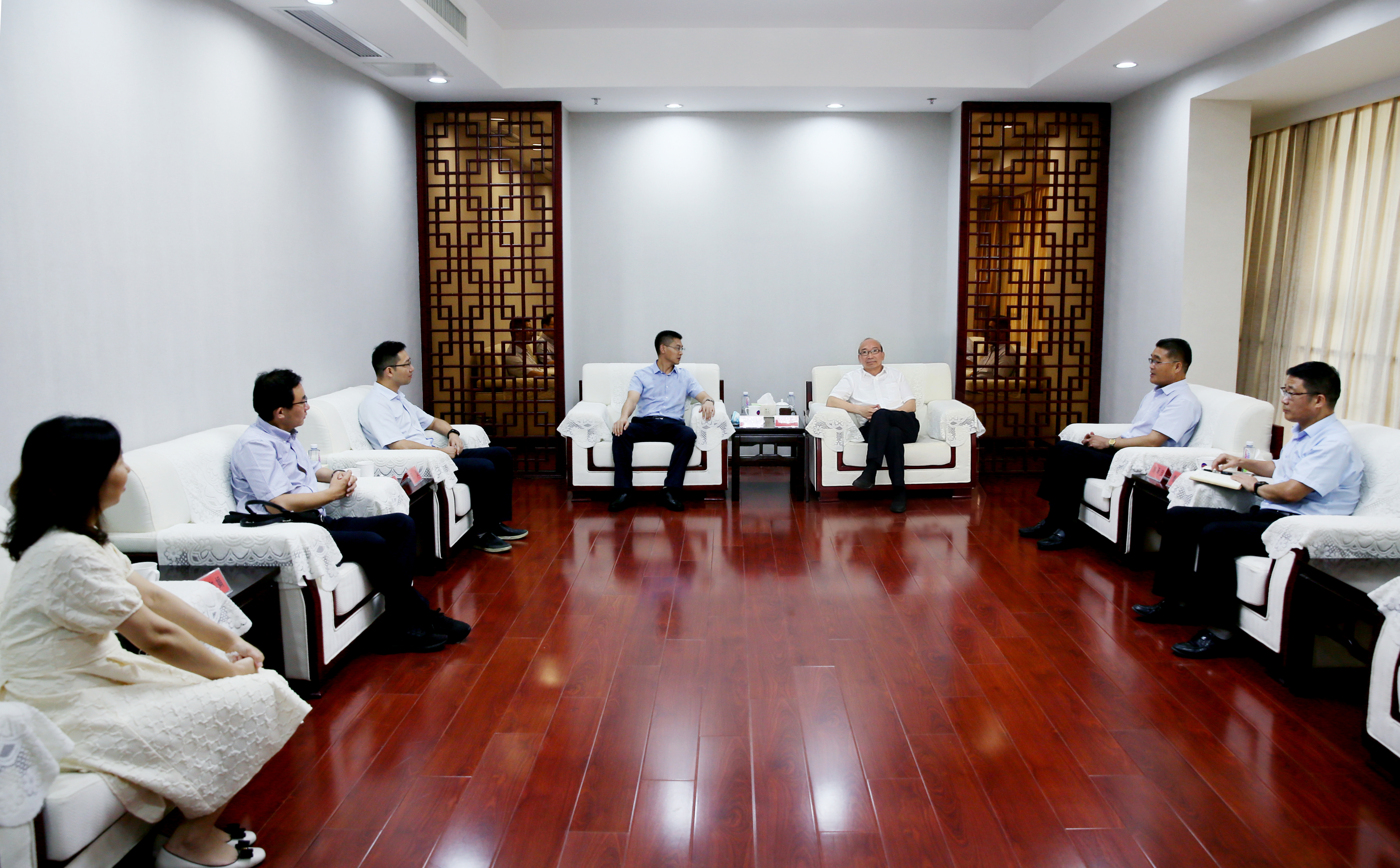 6月30日下午,集團公司黨委書記、董事長丁銳會見中國電信連云港分公司總經理印志國、副總經理茆劍等一行,雙方就加強集團公司信息化建設進行了座談交流,在企業“兩化融合”、5G應用等方面交換了意見。集團公司副總經理劉承志參加會見。    (工  宣)