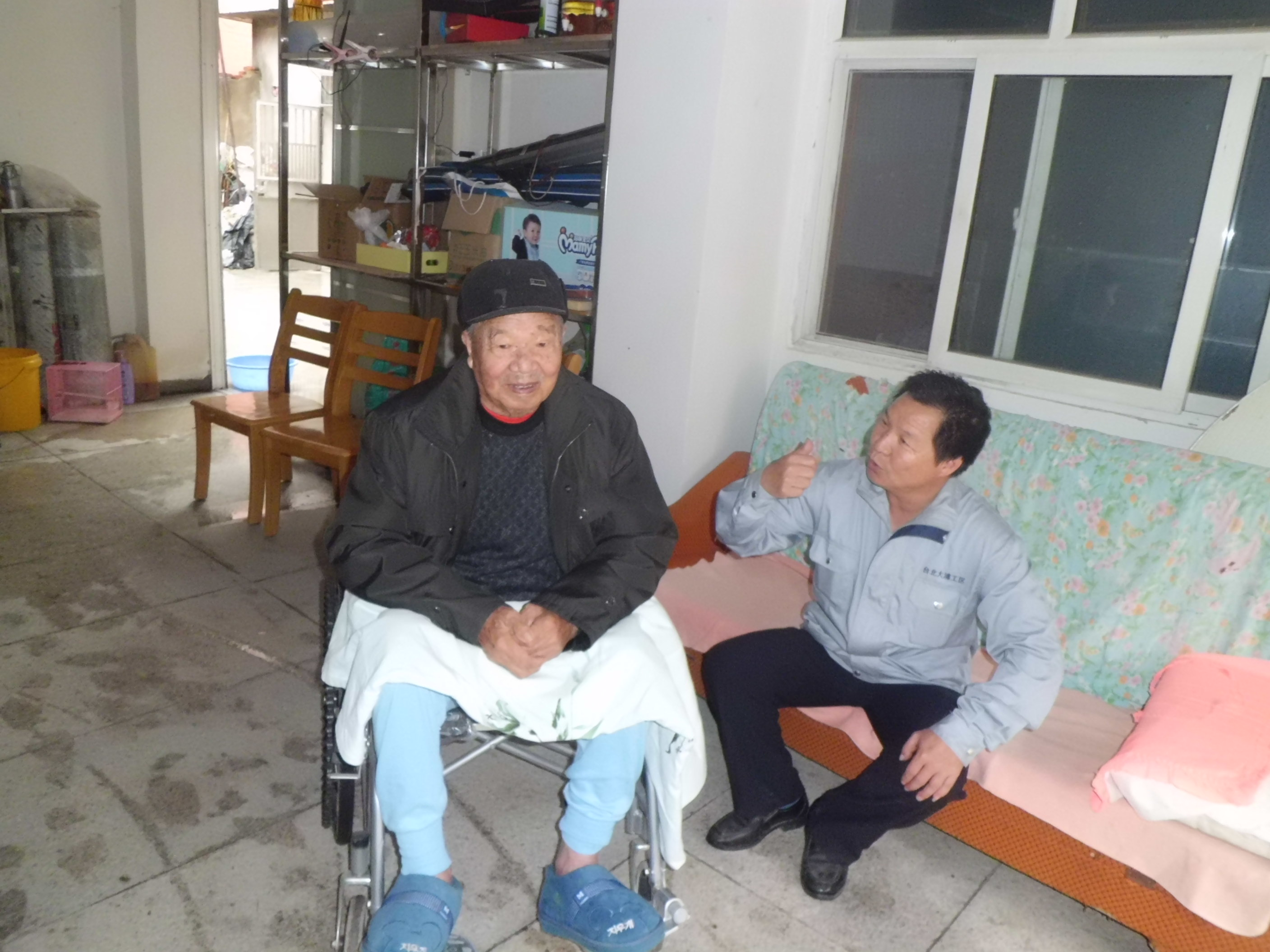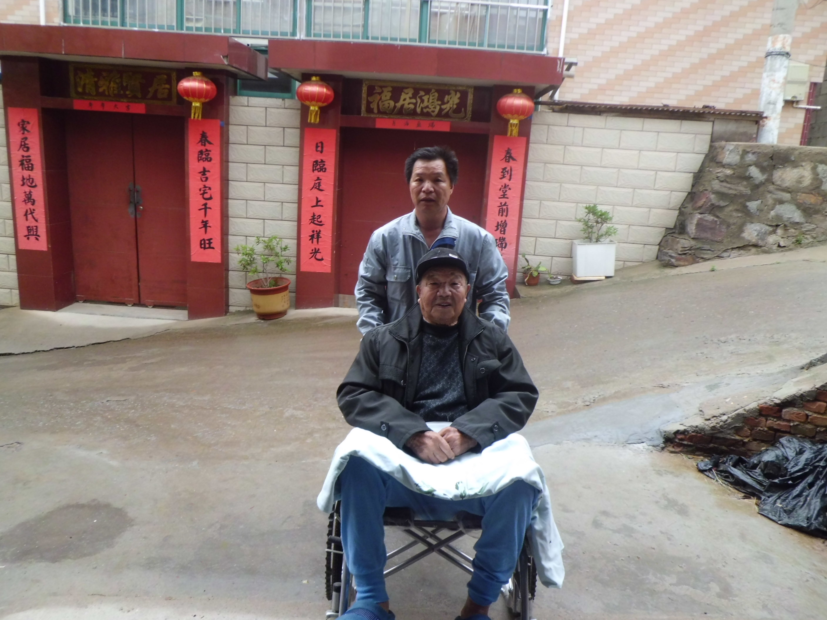 由于老人行動不方便,錢光友常推著父親出門活動活動。