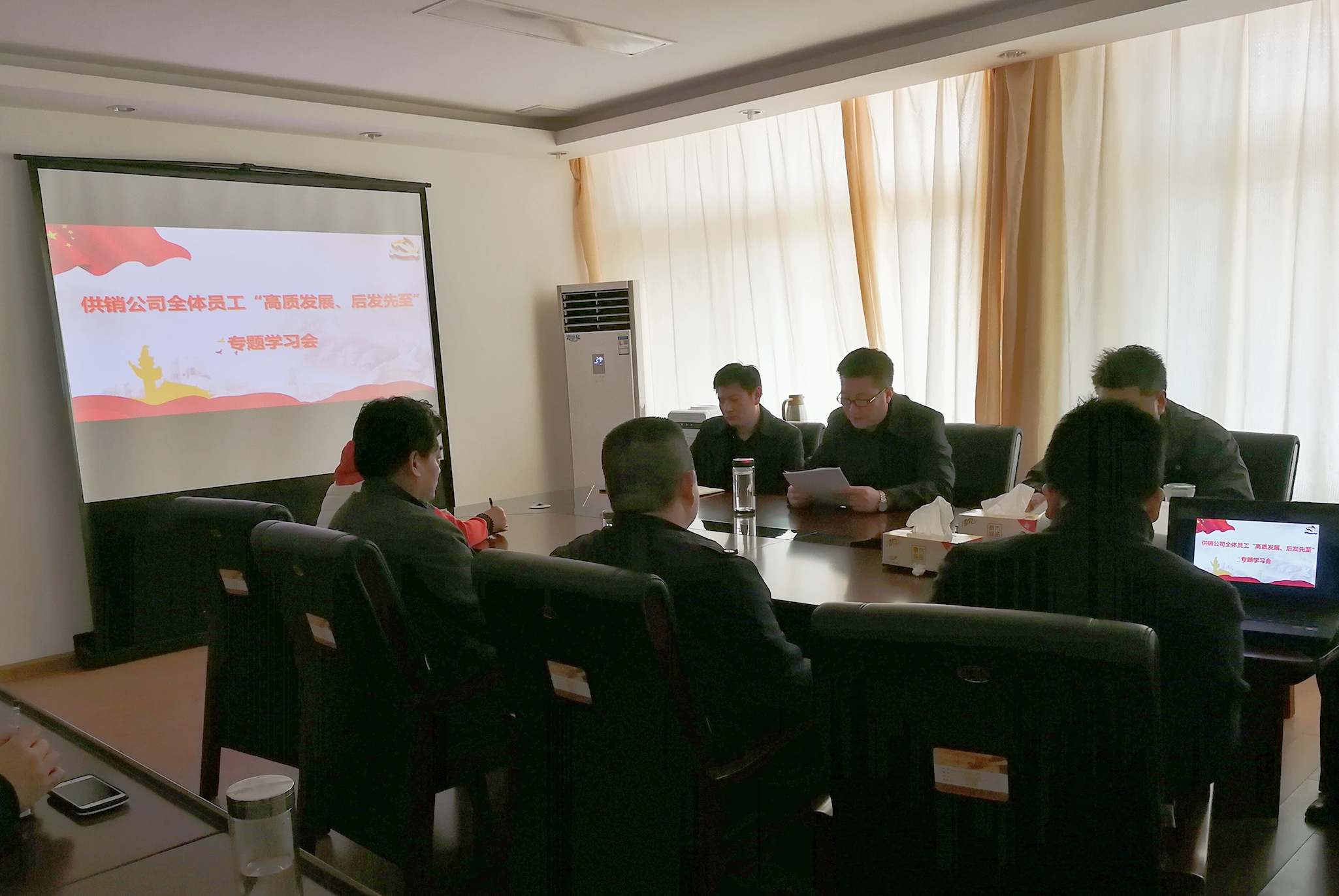 供銷公司在接到集團下發的《關于學習貫徹市委主要領導講話精神的通知》后,于313日下午在公司三樓會議室召開了專題學習會議,學習市委主要領導講話精神。會上,傳達學習了《市委書記項雪龍在市委常委會會議上講話》、《市委書記項雪龍在全市目標績效管理總結部署會議上講話》。供銷公司全體員工參加了本次專題學習會議。