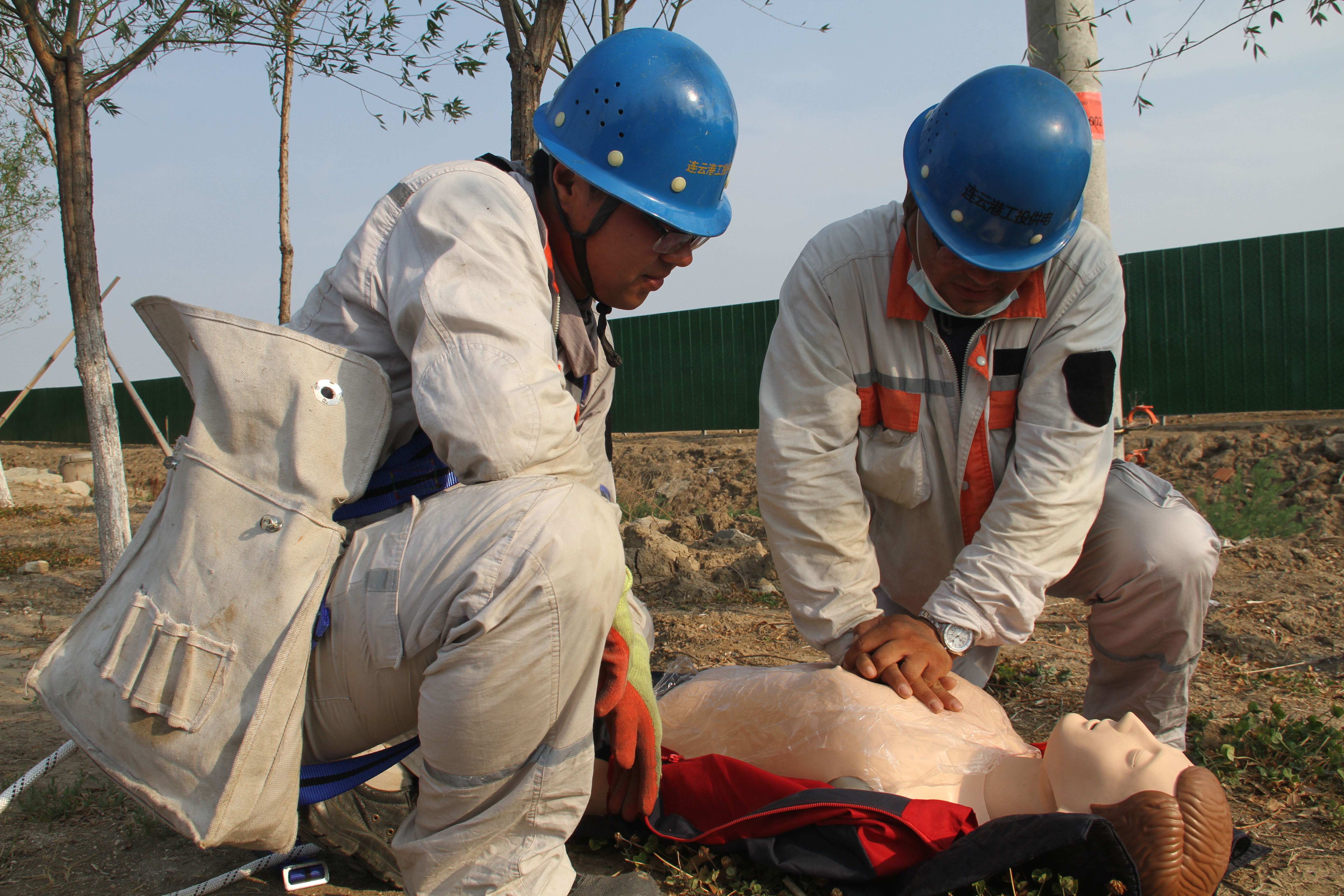本次活動,模擬臺北變電所10KV開太線創智街區支線2#桿AB接地短路,絕緣導線過負荷,燃燒滴落物引燃路邊雜草;1名線路搶修人員處置時發生高處墜落。承辦單位臺北供電所現場運行值班人員按操作票流程模擬倒閘操作、并宣讀流程,撥打公司值班室電話,搶險救援組接到電話,向總指揮匯報,總指揮下達搶修救援指令。隨即臺北供電所派出2名外線人員,進行干粉滅火器滅火模擬操作,搶修救援組立即奔赴現場,了解情況展開工作,采取初步救援措施;醫療救護小組人員配合所內救護人員1名,同步領取物資。現場模擬醫療救援,進行傷口消毒處理,無菌紗布綁扎演示,醫療救護組處理完畢,宣讀傷情另外嚴重情況,須120急救,啟動應急程序,模擬撥打120電話。模擬人員進行上桿裝備、勞保裝備穿戴演示,宣讀注意事項,并進行分支箱接頭、安裝、斷線緊線操作演練等。活動環節結束后,安全管理部劉福勇宣告事故應急救援結束。