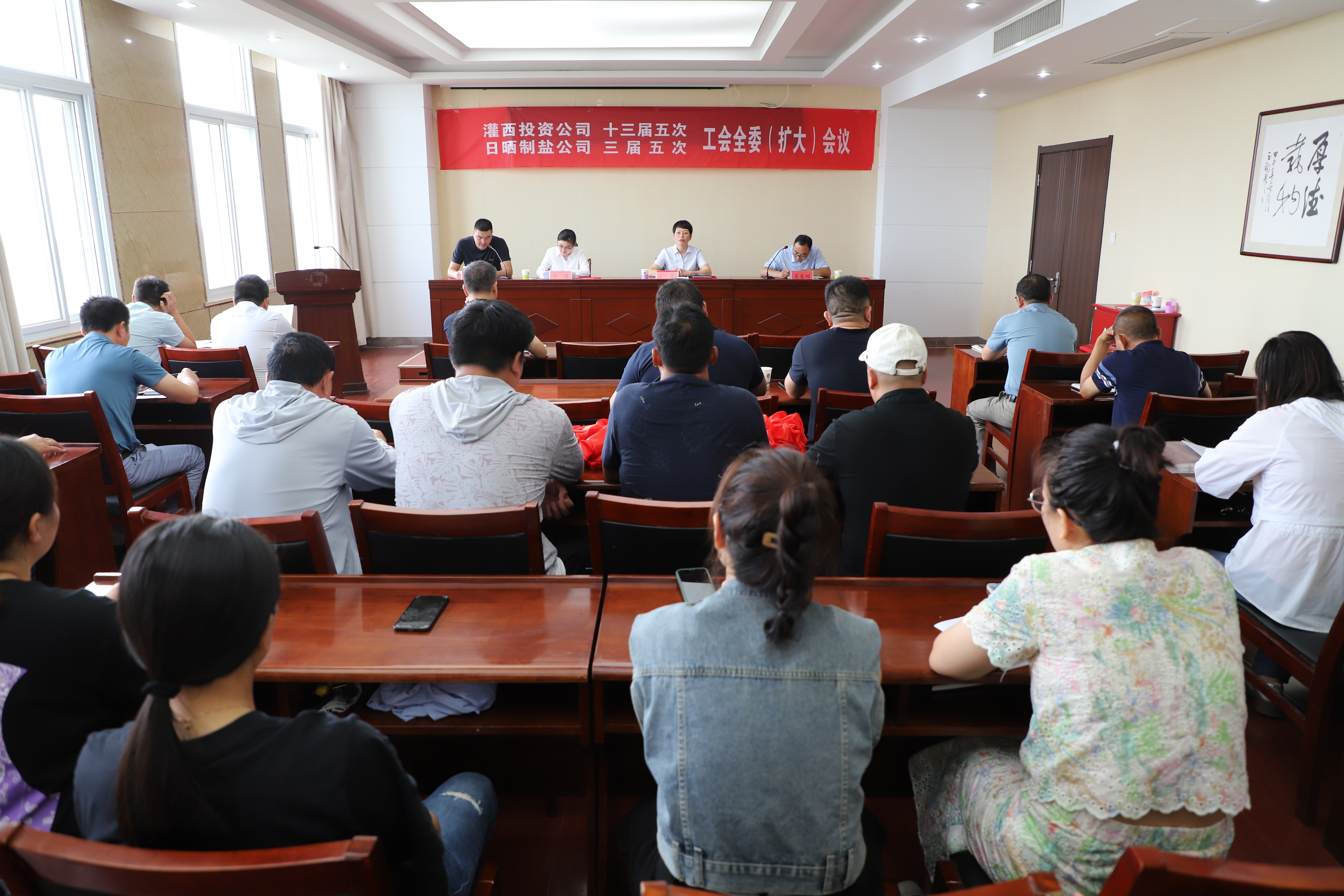 817日,灌西投資公司召開十三屆五次、日曬制鹽公司三屆五次工會全委(擴大)會議,公司黨委副書記、工會主席王宏出席會議,灌西投資公司工會十三屆、日曬制鹽公司工會三屆委員會全體委員,各單位工會主席、女工委員參加會議。