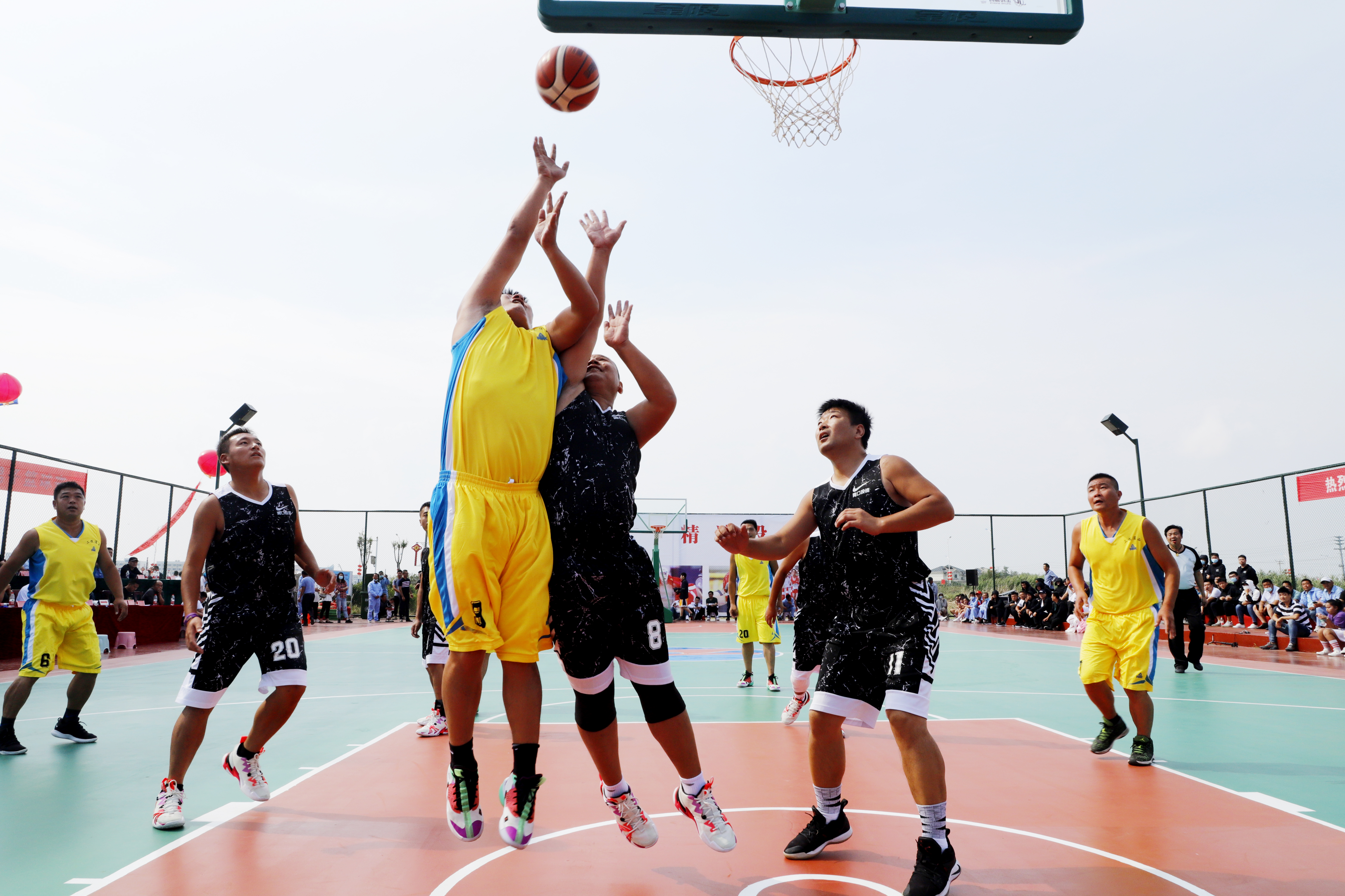 下午最后一場比賽是金橋制鹽公司對戰資產公司,首節比賽兩隊互有攻防,金橋制鹽代表隊5號,行動迅速,利用快攻屢屢得分,21號身強體強壯主攻籃下,21:1結束半場;下半場資產隊積極組織進攻,雖然分數落后,但是依然不放棄,敢打敢拼,利用遠投補足籃板弱項,最后還是以14:47敗北。(靳靜)
