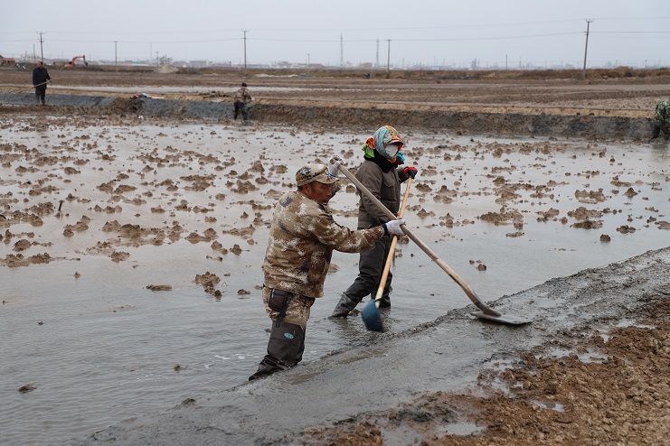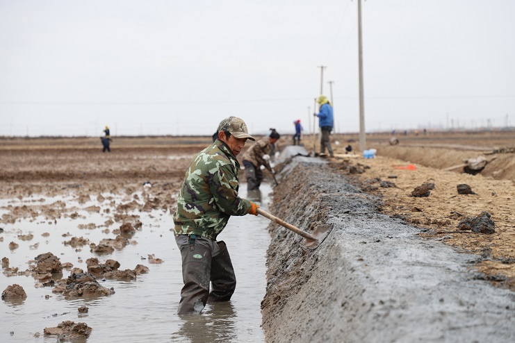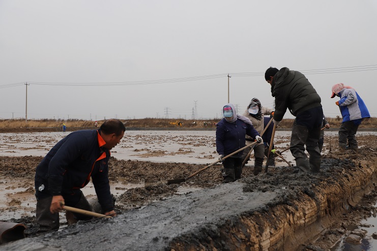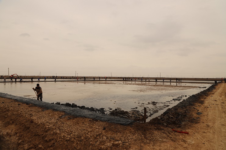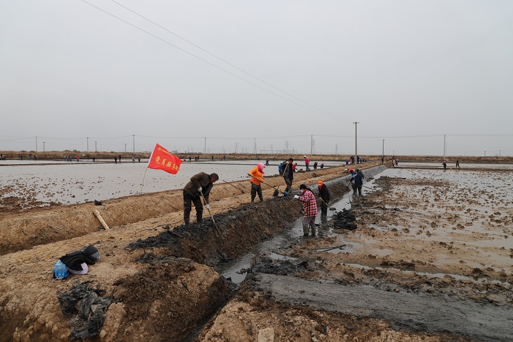11月29日上午,雖然天氣寒冷,但是在海鹽基地新改造的制鹵灘上,卻到處是一派火熱的勞動景象,參加“大會戰(zhàn)”的工人多達(dá)100余人,只見他們有的潑水,有的鏟泥,有的撈溝,有的做埝,大家分工協(xié)作。據(jù)了解,為了提高海水制鹵能力,確保海鹽產(chǎn)量,今年公司專門對海鹽基地部分廢棄灘地進(jìn)行了改造,以進(jìn)一步增加制鹵面積。近期,隨著改造工程接近尾聲,公司又組織精干力量對新改造灘地繼續(xù)進(jìn)行修整,以確保新建的制鹵灘地能夠盡快投入使用,為明年海鹽生產(chǎn)工作的正常有序開展奠定扎實的基礎(chǔ)。
