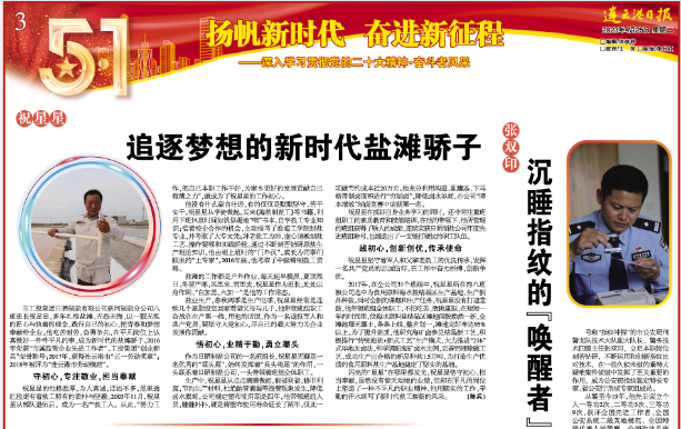2023年4月,我公司職工祝星星榮獲“江蘇省五一勞動獎章”、連云港市“最美港城人”榮譽稱號,并被連云港日報“五一”專欄刊登宣傳。