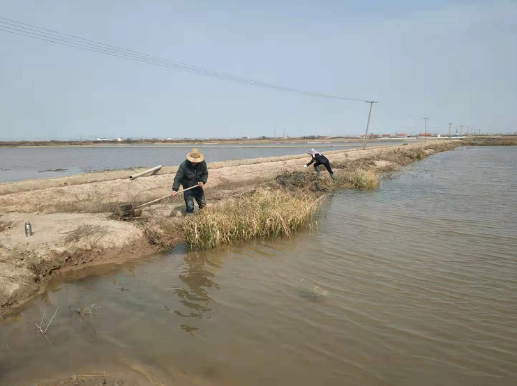 俗話說:“一年之計在于春”,鹽業生產同樣如此,清明節后隨著氣溫和蒸發量逐步升高,一班甜頭4至8排大米草泛濫成災,有部分格塊灘面被大米草完全覆蓋,嚴重制約了正常制鹵工作。面對困難,該班組沒有畏懼,沒有氣餒,5名職工心往一處想,勁往一處,用鐮刀鐵锨割倒挖清格堰大米草,同時使用割草機,推進速度。采取步步推進,逐塊清除方式,以愚公移山精神清除大米草,理順走水路線,完善灘地條件。海水鹽基地朱文龍