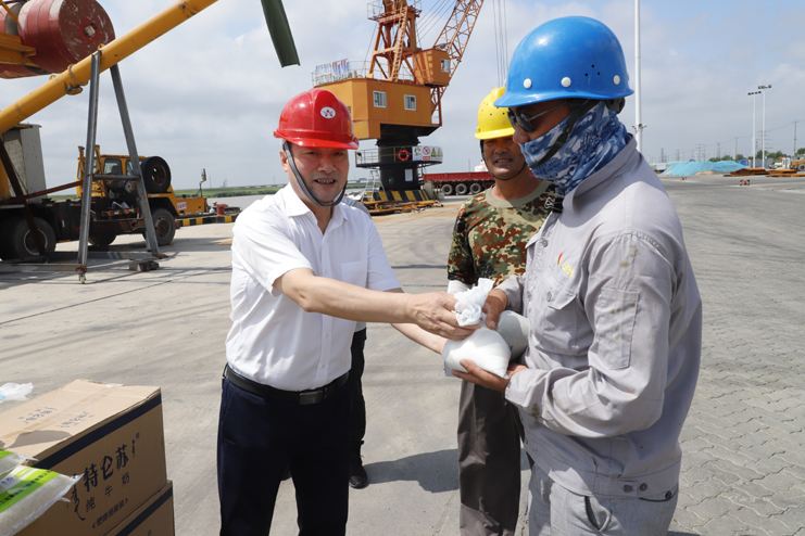 董事長(zhǎng)李國(guó)文一行到碼頭開展“送清涼”慰問活動(dòng)