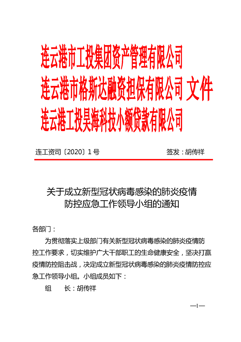 關(guān)于成立新型冠狀病毒感染的肺炎疫情防控應(yīng)急工作領(lǐng)導(dǎo)小組的通知