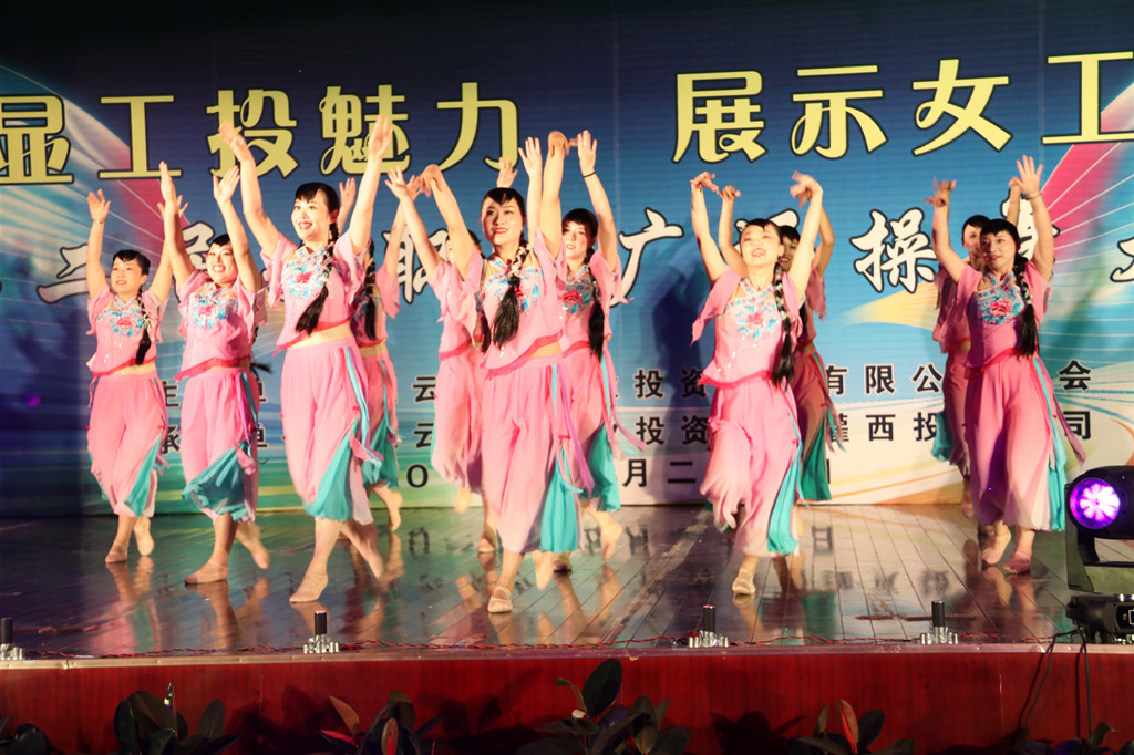 | 5月27日,主題為“彰顯工投魅力展示女工風采”的2019連云港市工投集團有限公司第二屆女職工廣場操舞大賽落下帷幕。由資產(chǎn)管理公司12名女同志組成的健身操代表隊,憑借舞蹈《共筑中國夢》、《小親圪蛋》榮獲大賽三等獎。 本次比賽是由集團公司工會主辦,灌西投資公司工會承辦,比賽場地位于灌云縣臨港產(chǎn)業(yè)園區(qū)管委會會堂。來自集團公司各權(quán)屬單位共13支隊伍參加比賽。上午9時30分,比賽正式開始。伴隨著歡快悠揚的音樂,催人奮進、活力昂揚的節(jié)目輪番上陣,各代表隊以飽滿的熱情、整齊的隊列、優(yōu)美的舞姿,展現(xiàn)了廣大群眾多姿多彩的文體生活和良好的精神面貌,給評委、觀眾留下了深刻的印象,充分展示了健身操、健身舞的柔美與動感。 通過本次健身操比賽這種積極、向上、健康、快樂的方式,向群眾展示工投女職工在各行各業(yè)努力拼搏,不斷追求美好生活、幸福生活的熱情和信心。