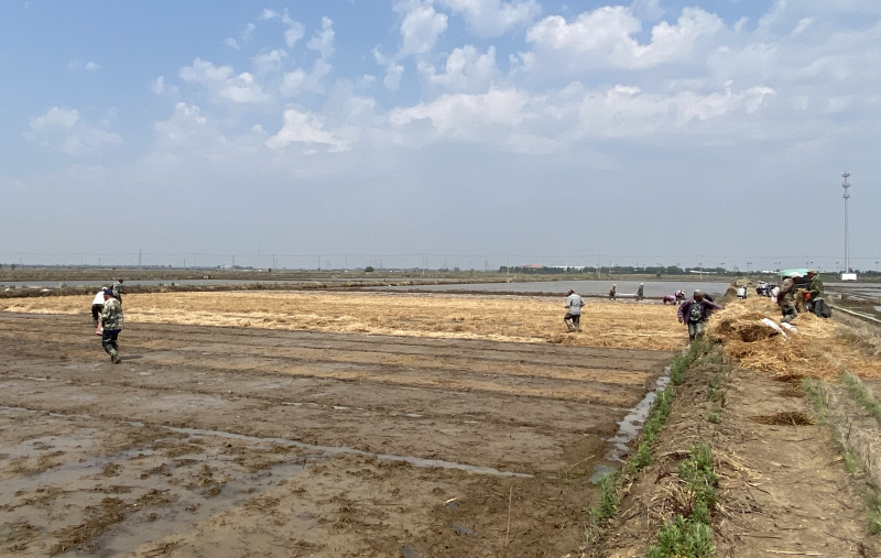 6月10日,在大新農場的秧板田里,新品種“稻花香2號”啟動落谷作業,撒種、蓋草、鋪膜,處處都是繁忙景象,成了綠色田野上的一道亮麗風景線。