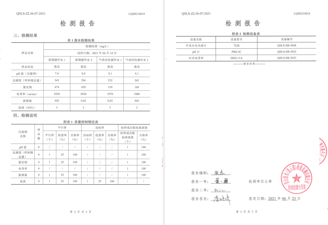 神特公司檢測報告公示