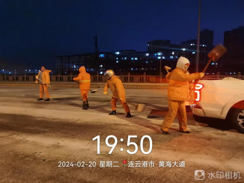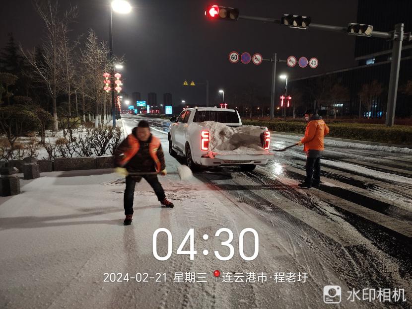 ? ? 220日晚,港城迎來又一輪降雪,低溫雨雪冰凍天氣對城市道路交通和市民出行產生較大影響。為確保雪天道路暢通及市民出行安全,綠化分公司聞雪而動,219日晚開始,組織應急隊伍連夜行動,在花果山大道、黃海大道等開發區主干道融雪劑,開展清雪除冰工作,掀起一場齊心協力、團結互助的戰風雪保通暢行動。