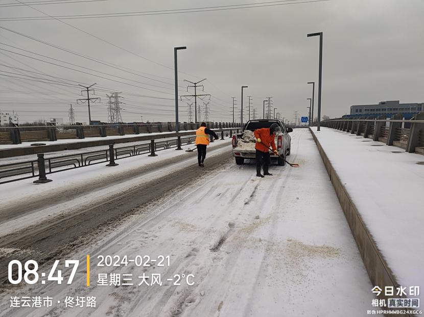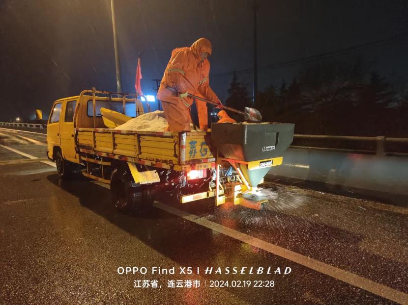 ? ? 截至21日下午1點,公司出動應急清雪隊伍60人次,拋撒融雪劑6,花果山大道已全線復通清雪除冰工作還在持續中