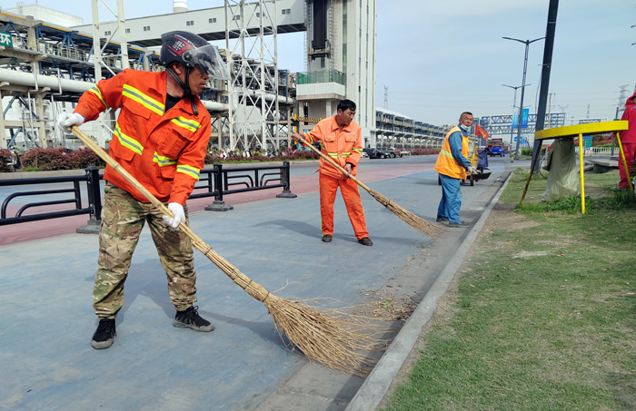 保潔保障“步調(diào)一致”。為完成徐新路、徐圩大道、海濱大道等石化園區(qū)多條道路保障任務(wù)。130余名“保潔先鋒”輪流轉(zhuǎn),每日清掃輔道路修剪石楠等樹(shù)葉雜草落葉路線1500米、清洗站臺(tái)座椅40余個(gè)、清掏果皮箱130余個(gè)、轉(zhuǎn)運(yùn)生活垃圾300袋、打包轉(zhuǎn)運(yùn)商鋪垃圾150余車,為保障節(jié)日期間道路保潔鍥而不舍。