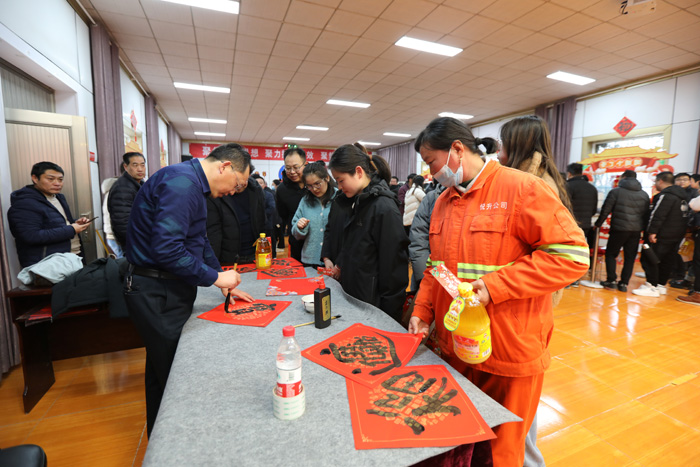 現場開展的寫“福”送“福”活動,與項目比賽同頻共振,在喜慶的音樂聲中把一張張紙紅墨香的“福”字送個每一名職工,為營造喜樂福滿的“新春賽場”增色添彩,增強職工的成就感和幸福感。(徐宣 徐工)