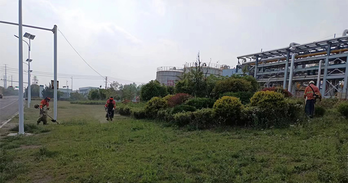 板橋工業(yè)園區(qū)祥和路、云港路、瑞和路等路段,隨處都可見到綠化工人忙碌的身影,他們不畏辛苦,搶時(shí)間、抓進(jìn)度,對(duì)綠籬、綠化苗木進(jìn)行修剪造型。園區(qū)路邊,機(jī)器轟鳴,除草工作有條不紊。綠化工人們頭戴防護(hù)帽,架著割草機(jī),動(dòng)作嫻熟,割草效率極高。三人一排、兩人一對(duì),齊頭并進(jìn),戰(zhàn)線推進(jìn)過的地方?jīng)芪挤置鳎粝乱黄R的坡面,賞析悅目。經(jīng)過多日持續(xù)奮戰(zhàn),已經(jīng)完成綠地雜草清理15萬平方米,綠籬修剪3萬平方米任務(wù)。為高標(biāo)準(zhǔn)完成二季度綠化管養(yǎng)目標(biāo)奠定基礎(chǔ)。(劉永)