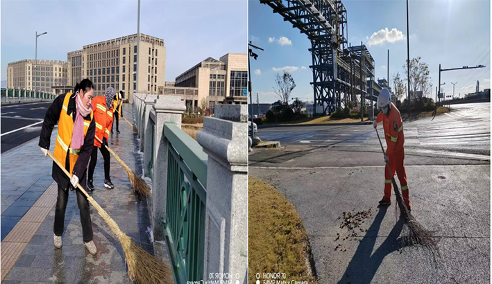 連日來(lái),港城氣溫受寒潮影響再度下降,為持續(xù)保障新城園區(qū)每條道路冬季環(huán)境整潔靚麗如初,保潔分公司全員上下攜力同心,無(wú)懼風(fēng)寒刺骨,用堅(jiān)守與奮戰(zhàn)展現(xiàn)敬業(yè)精神,嚴(yán)寒冬日道路沿線(xiàn),工作熱情再度“升溫”,寒冬里構(gòu)成一幅幅動(dòng)人美麗勞動(dòng)畫(huà)卷。