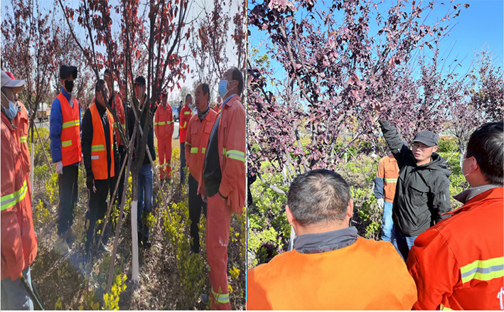 在培訓(xùn)現(xiàn)場,孫工主要圍繞喬木修剪標(biāo)準(zhǔn)、病蟲害枝條處理、修剪工具規(guī)范使用、以及修剪完畢對喬木如何處理等注意事項等內(nèi)容進行學(xué)習(xí)培訓(xùn)。參訓(xùn)人員通過理論和實踐相結(jié)合的方式,即學(xué)即實踐,更快更直觀地掌握了綠植修剪技術(shù)。大家紛紛表示,要珍惜學(xué)習(xí)的機會,結(jié)合公司綠化管養(yǎng)實際,把所學(xué)技術(shù)運用到綠化養(yǎng)護上,營造徐圩優(yōu)美景觀打?qū)嵒A(chǔ)。(潘浩)